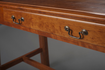 ![]() Writing Desk Our Writing Desk features mortise and tenon construction and a beautiful ambrosia maple drawer box. This piece is very versatile as a work desk or it can function beautifully as a console table behind a sofa or in a foyer. A very nice feature is a finished back. This desk can be placed in the middle of a room or office.