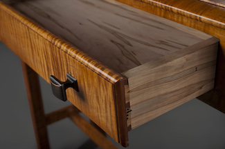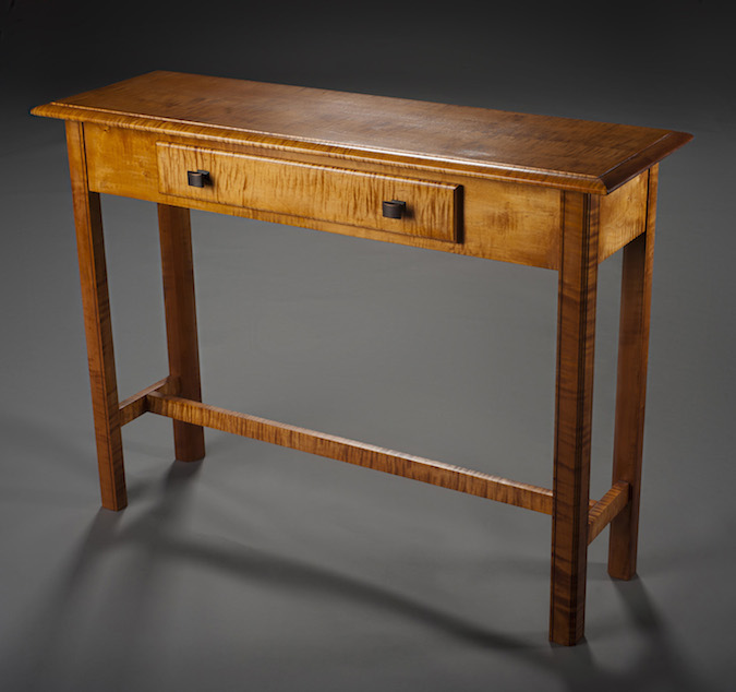 ![]() Console Table with Drawer This console table features a drawer and stretchers. It is available with knobs (as shown) for a contemporary feel or it can be made with pulls for a traditional feel. This table also comes with a solid ambrosia maple drawer box with handcut dovetails.